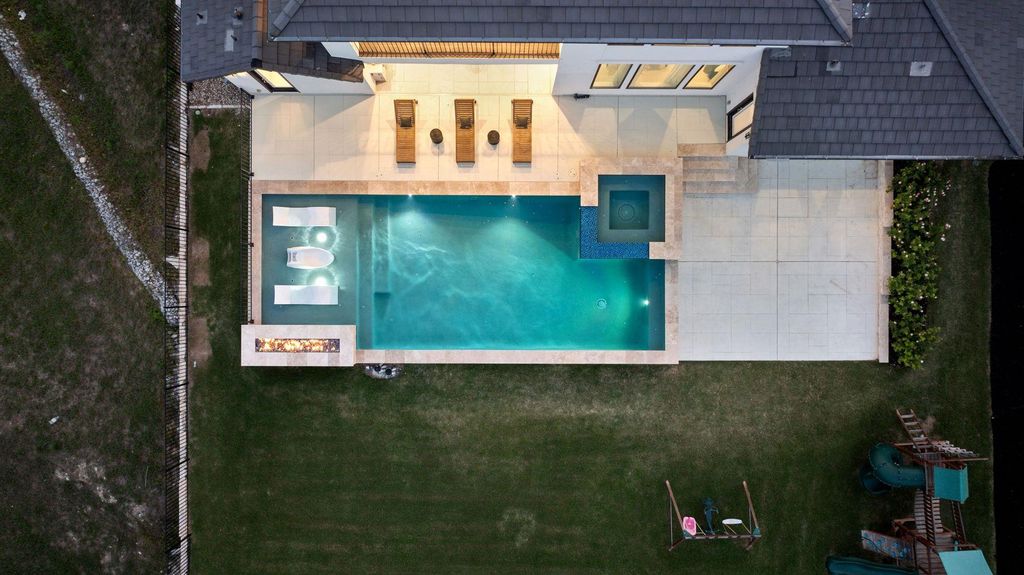 Step into the pinnacle of luxury living at one of Travisso's most coveted homes. Nestled amid the community's breathtaking landscape, this immaculate Drees Lynmar II home is the exact replica of the Travisso Model home and a masterpiece of architectural excellence. Crafted with over $500K in thoughtful upgrades and meticulous attention to detail, this residence redefines elevated living. Designed with the discerning homeowner in mind, the home effortlessly accommodates multi-generational lifestyles. Upon entering, you're welcomed by soaring ceilings and an expansive open floorplan, leading seamlessly to the outdoors through large sliding doors. Beyond them awaits a resort-style pool and spa, set against a sprawling backyard that stretches toward the horizon. An awe-inspiring grand foyer sets the tone for the elegance that lies within. A sophisticated office offers the perfect blend of productivity and style, while the heart of the home"”the gourmet kitchen"”features a stunning waterfall island ideal for culinary adventures and lively gatherings. For added convenience, a separate kitchenette is tucked within the in-law suite or cabana room, providing autonomy and comfort for guests or family members. Ascend to the second floor and indulge in the private balcony's sweeping panoramic views. Entertainment is boundless with a dedicated media room and a spacious upstairs game room complete with a stylish bar"”perfect for hosting family and friends. Each bedroom boasts its own full bath, ensuring comfort, privacy, and a boutique hotel-like experience for every occupant. Embrace a seamless fusion of indoor and outdoor living, where every space invites the beauty of nature to flow through. Surrender to an extraordinary lifestyle of opulence and sophistication in this exclusive Travisso residence, where true luxury knows no limits.