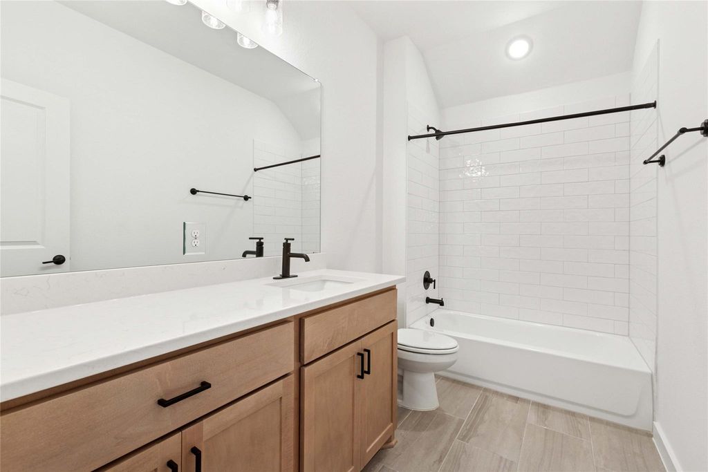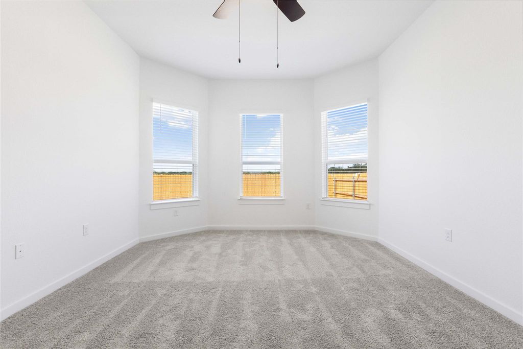 This gorgeous 2-story, open-concept home includes 3 bedrooms, 2.5 bathrooms, a study, owner's bay window, covered patio, and a generous sized 2nd-story game room. Additional design options for this home include 8' front door, 8' interior doors on the first level, vaulted ceilings, luxury vinyl plank flooring in main areas and modern design selections throughout. Designer kitchen includes stainless steel appliances, 30" 5 burner gas range, 42" cabinets, custom kitchen backsplash, mudset tile shower floor and blinds throughout. The entry and family room area both vault to the 2nd floor and offer natural light with the ample windows. This is a must see!