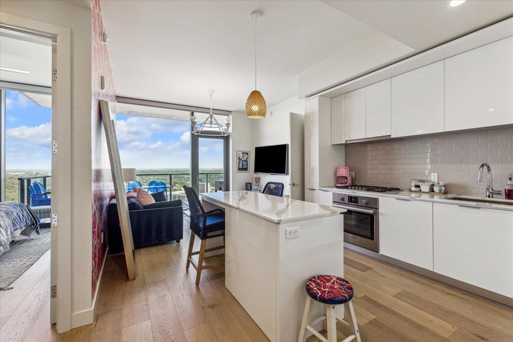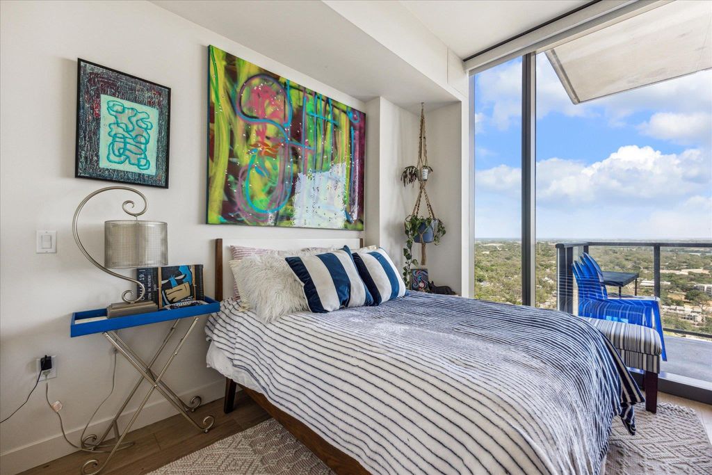 PRIME parking spot comes with the condo and 2nd PRIME parking spot available for additional negotiable price. Luxury lakeside living situated in the quiet residential part of sizzling Rainey ST District neighborhood. Enjoy your morning coffee to electrifying sunrises and walk to Austin's best restaurants and live music. 2/2 condo with panoramic southeastern Lady Bird Lake view from every room with the classic smooth white finish! Features floor-to-ceiling windows, upgraded hardwoods and tile flooring, Italian cabinetry, quartz countertops, giant covered balcony, gas stove with custom closets, solar and black out motorized shades and designer light fixtures. Highly functional design with no wasted space that works great for a 2/2 or a 1+study/2. This one includes an awesome low floor parking spot on P3. 44 East Ave is a wonderful community with a vibrant social calendar to easily make friends with all of your awesome neighbors! 13,000 SF of amazing amenities designed by Michael Hsu including gorgeous lobby with coffee and 24 HR concierge, a cenote pool, outdoor lounge with gas grills, dog park/lounge/spa, fitness center, yoga studio, conference rooms, great room with TVs and caterer's kitchen, family room with shuffle board and foosball and 2 guest suites. Steps to hike/bike trail, entertainment, live music, parks, coffee, Emmer and Rye, Royal Blue Grocery, Whole Foods and Target. This building is amazing for dog owners - the dog lounge is awesome and Trailhead Park is right outside the building! Excellent access to I35, 71, 183, 130, UT, Med Center, HEBs, Oracle, and Austin Bergstrom. Must see it! Furnishings are negotiable. Owner/Agent