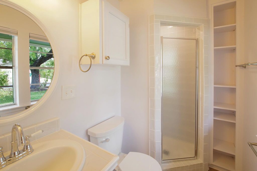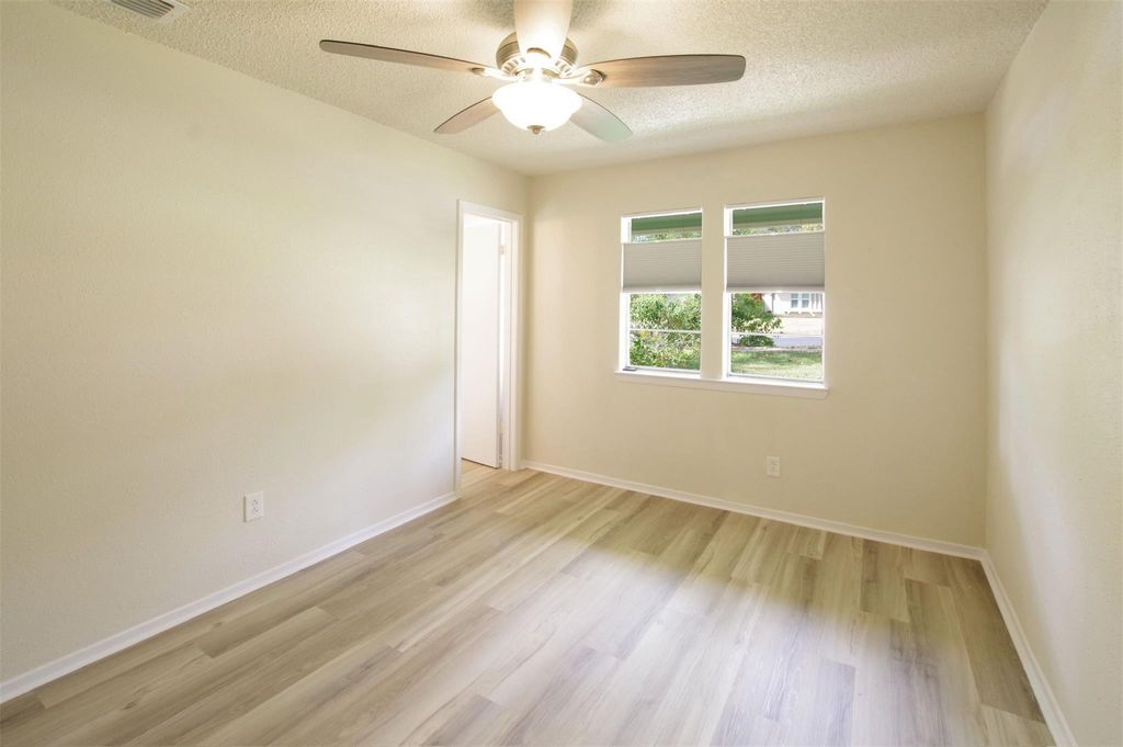 Single-level 3 bedroom 2 bath home in north central Austin about 5 miles to Domain, 7 miles to UT, and 8 miles to the Capitol. Large shaded yard and a 2-car garage. As you enter, there is a front living space that could be a foyer, formal dining, or reading nook. There is a half wall defining this space from the family room, so it feels open yet can be furnished as a separate space. The family room has a vaulted beam ceiling and opens to the dining space and kitchen. The kitchen features painted cabinets and quartz countertops. There are 3 bedrooms and 2 full baths. The primary bedroom features an ensuite bath. The second bedroom is average sized. The third bedroom is small but would work for a young child's bedroom or make a nice home office or hobby room. The 2-car garage provides good storage and washer / dryer connection. There is both gas and electric for the dryer. The back patio is covered and was formerly screened in. One could replace the screening if desired. Either way, you have a nice covered place to enjoy the large back yard. The house has been painted and has LVP flooring, quartz countertops, and feels fresh and clean. The original windows are clean and bright with a couple of minor cracked panes. It is priced very well for the condition and location, as you will see when you tour in person.