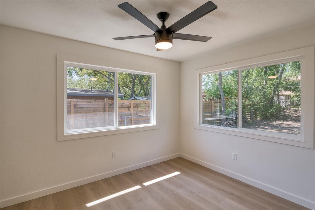 This home has been completely transformed from the ground up"”taken down to the bones and rebuilt with modern comfort and style. Enjoy peace of mind with a brand-new roof, HVAC, plumbing, complete electrical rewiring, and new siding. Inside, vaulted ceilings and an open layout create a bright, airy atmosphere. The kitchen is a true standout with all-new appliances, including a smart refrigerator, an electric range (gas hook-up available), plus a bar with wine fridge"”perfect for entertaining. The spacious backyard offers endless possibilities and is zoned for ADUs, making it ideal for a guest house, rental, or studio. All of this in an unbeatable location: just 5-10 minutes to South Congress and South Lamar, 15 minutes to Downtown, and moments from breweries, dining, and entertainment at The Yard.