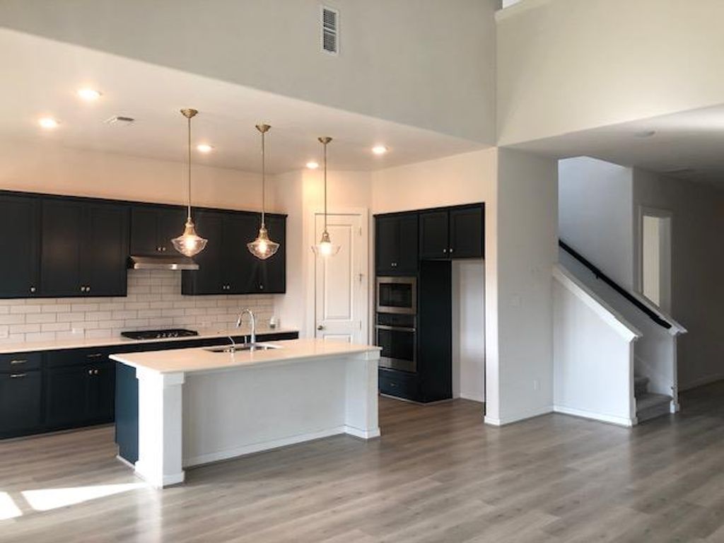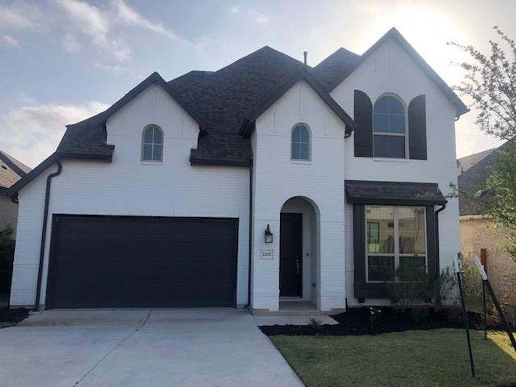 Open and bright with soaring ceilings. Island kitchen with lots of counter space is open to family room . Spacious pantry, 42" cabinets. Large covered patio overlooks the green belt.. Private primary bedroom on first floor with windows facing the green belt. Downstairs secondary bedroom next to full bath. downstairs office/study with doors for privacy. Upstairs loft and game room with three more bedrooms and two baths. No existing survey. No Seller's Disclosure