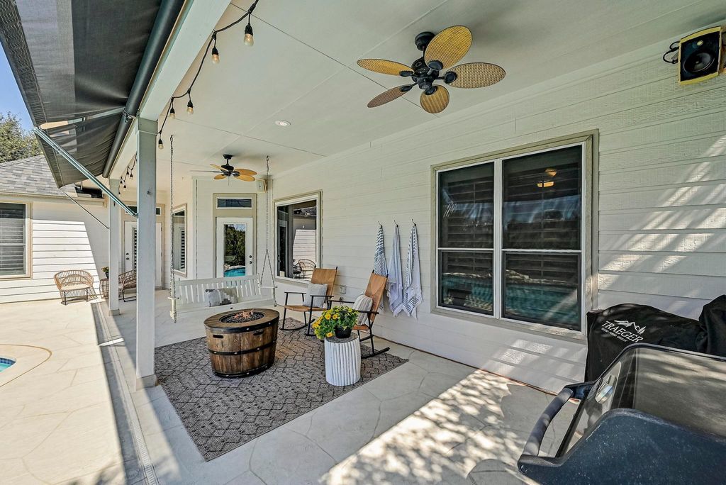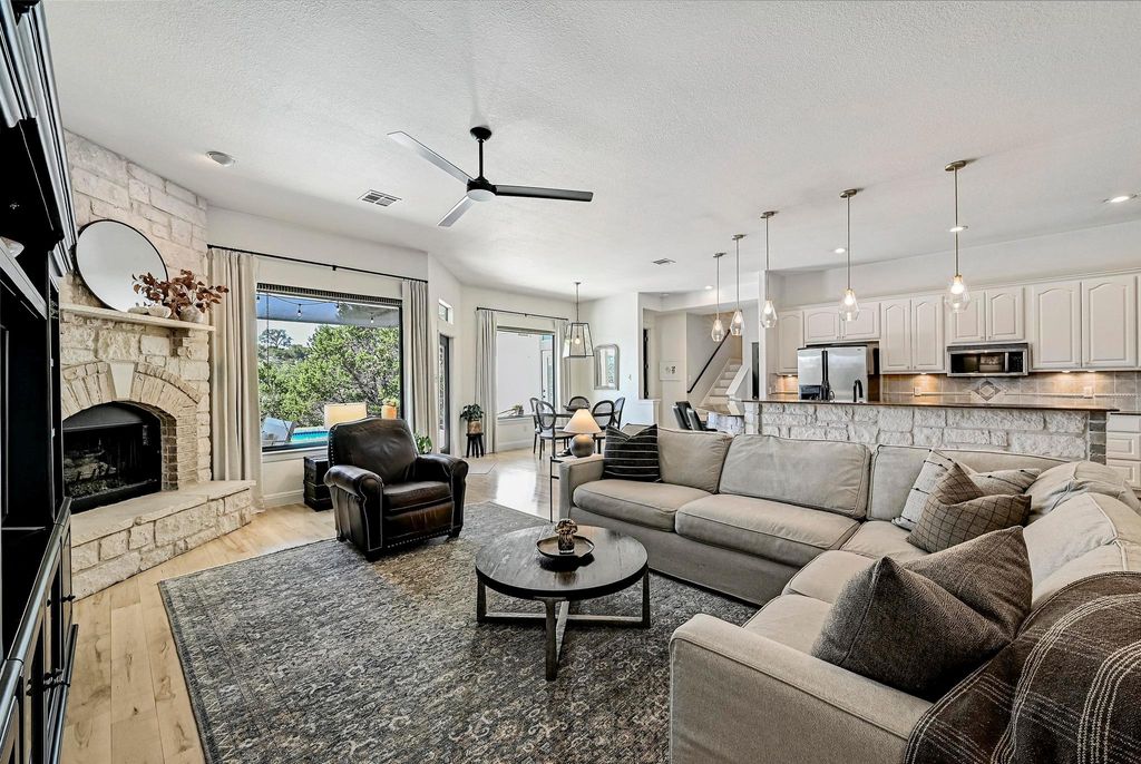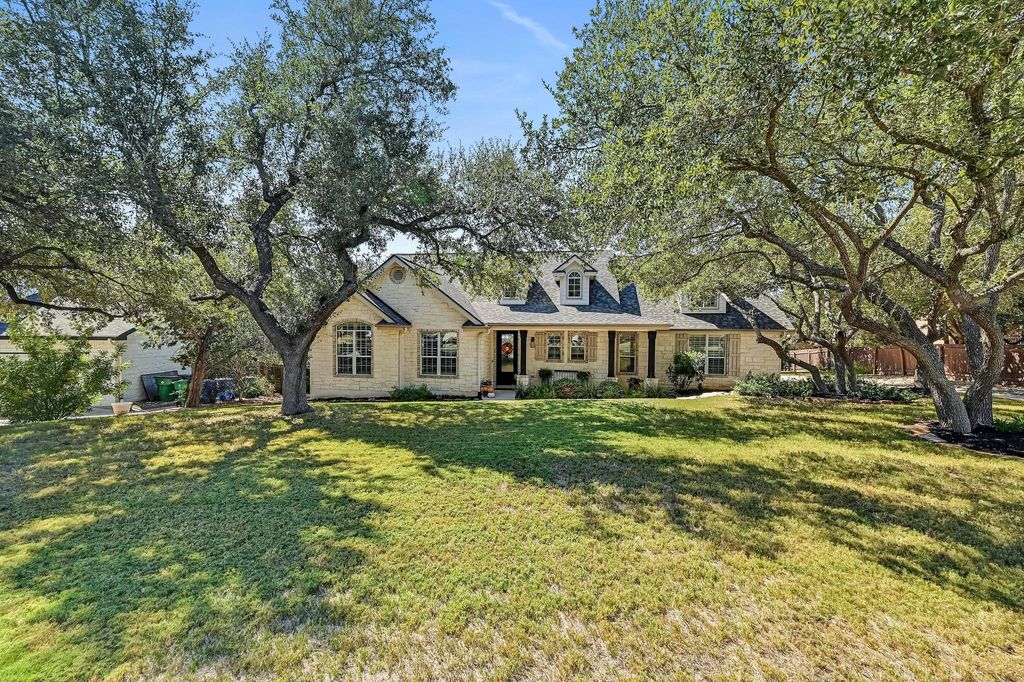 OPEN HOUSE SUNDAY 10/19 12-2pm! Sellers are the original owners of this meticulously maintained 2,876sf custom home in LTISD w/ recent updates, a large pool & picturesque hill country views! This well-loved 5 bed 3.5 bath home sits on a .4acre landscaped lot, w/ a private backyard & panoramic sunset views off the large covered back patio. Enjoy quiet evenings under the stars in this dark-sky hill country community, located 1-2 miles from several marinas + Lake Travis/Lake Austin, & just 20miles (30mins) to the heart of downtown Austin for commuters. Split floorplan w/ master on main, opposite of the 3 downstairs guest bedrooms & 1.5 guest baths. Situated over the garage upstairs, you'll find an XL 5th bedroom (or game room) w/ closet storage & ensuite full bath. Sellers are the original owners of this beautiful 2003 custom home built by longtime local builder, Greg Flenniken-Flenn Custom Homes! Original building plans & survey convey. Granite countertops & SS appliances in the kitchen, w/ ample storage, a desk area & walk-in pantry. Dedicated laundry room off the kitchen with side-by-side washer & dryer. Real wood plantation shutters & custom window treatments/drapery throughout. LOW 1.7% TAX RATE. NO HOA! Light deed restrictions. STR allowed. Enjoy minimal electric bills w/ the 24 Solar Panels (6kw) installed in 2013 ($20K cost, 100% owned)! On WCID17 waterline & original septic system. Recent updates include: new premium asphalt shingle roof $38k (2023), 2 new HVAC units $21k (2022), resurfaced Cool Deck back patio surrounding the pool $6k (2022), replaced pool pump equipment/heater $1700, new real wood Maple flooring installed throughout entire first floor + stairs $22k (2020), elongated toilets installed $2k (2020), new Bosch dishwasher & new disposal $1k (2022), new fans & interior/exterior light fixtures $2k, new mirrors/cabinet paint/pulls/plumbing fixtures in bathrooms $3k, new interior paint (2021). Seller offering $5k buyer credit for new upstairs carpet.