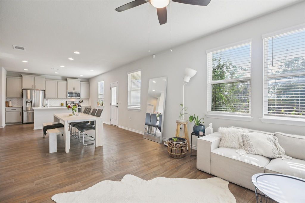 Welcome to 1913 Jacey Way, a spacious and thoughtfully designed home in East Austin. Featuring 4 bedrooms, 3 full bathrooms, and over 2,200 sq. ft. of living space, this property offers plenty of room for comfort, function, and entertaining. Step inside to discover an open-concept layout with natural light throughout. The kitchen provides generous counter space and modern appliances, flowing seamlessly into the dining and living areas. A two-car garage adds convenience and storage. Upstairs, you'll find well-sized bedrooms and bathrooms designed with everyday comfort in mind. The primary suite includes a private bath with dual vanities and a walk-in closet. Outside, the backyard offers a versatile space for gardening, play, or relaxation.