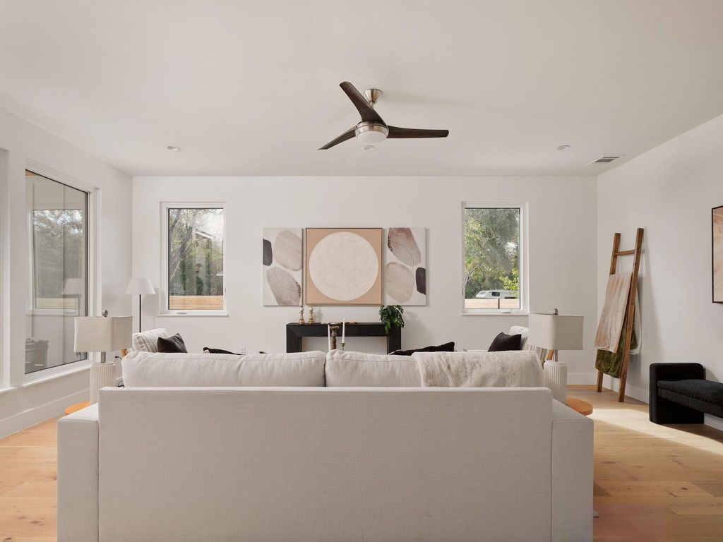Experience modern East Austin living at 1215 Fort Branch #1. This thoughtfully designed home offers 3 bedrooms, a dedicated office, and 2.5 bathrooms, including a spa-like primary suite. Designer selections are featured throughout the sleek, contemporary interiors with modern timeline architecture. Natural light fills the open living spaces, highlighting the sophisticated finishes and seamless flow from room to room. Step outside to enjoy spacious front and back yards, gated and fenced for privacy, plus terraces ideal for entertaining, morning coffee, or evening relaxation. The home's modern design is complemented by durable, stylish materials and attention to detail at every turn. Located in a thriving, up-and-coming pocket of East Austin, this property comes with no HOA dues or short-term rental restrictions, offering both convenience and flexibility. With its combination of thoughtful design, outdoor spaces, and prime location, this home is a rare opportunity in East Austin