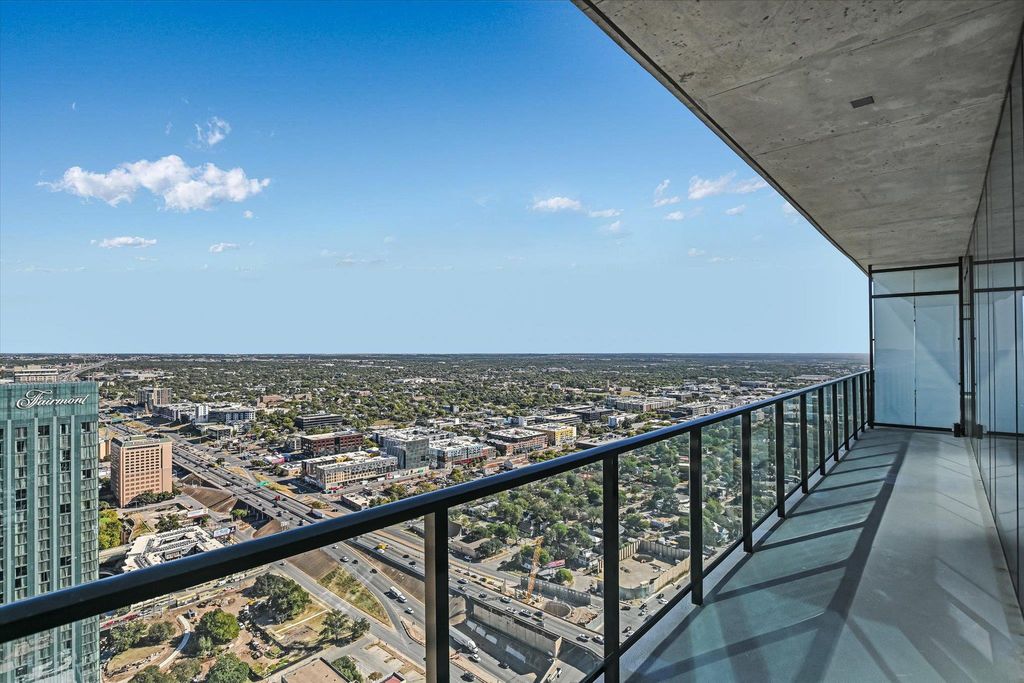This 3-bedroom, 3.5-bath residence on the 43th floor of The Modern Austin Residences offers 2,324 square feet of refined interior living space and a 222-square-foot private balcony showcasing sweeping views of Lady Bird Lake, the Austin skyline, the State Capitol, and the Hill Country. Expansive floor-to-ceiling windows fill the home with natural light, accentuating elevated finishes and a seamless open-concept design. The chef's kitchen is appointed with light quartz countertops, an upgraded full-height backsplash, and premium Wolf appliances. An upgraded wet bar enhances the space for effortless entertaining. Additional highlights include wide-plank hardwood flooring and two premium parking spaces with an EV charger. Residents of The Modern enjoy over 19,000 square feet of curated amenities across three levels, including a 25-meter lap pool and spa, fitness center, yoga studio, sky lounge, indoor and outdoor lounges, dog park, business center, and 24/7 concierge service. Perfectly located in the Rainey Street District, The Modern offers unmatched access to Austin's best dining, nightlife, and the Lady Bird Lake trail.
