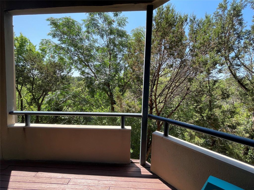 Welcome to Habidad at Barton Creek, a serene greenbelt community in the heart of Austin! This 2 bedroom, 2 bath condo offers open living, abundant natural light and a private balcony surrounded by mature trees, overlooking the Barton Creek Greenbelt. Ideal for professionals, investors, or lock-and-leave owners seeking an updated condo in a premier location. This unit is one story with a ground level entrance and storage closet located on the balcony. Walkable to the Spyglass Trailhead at Barton Creek Preserve, Taco Deli for yummy tacos, Rosy's Grocer & Coffee and the Capital Metro Bus Stop at Spyglass & Barton Skyway. Relax at the community pool under the beautiful oak trees. Enjoy cooking in this sleek updated kitchen with granite countertops, stainless steel appliances, pantry cabinets with the stackable laundry area tucked away in the corner. High ceilings in the living room, filled with natural light, gas-log fireplace and glass door to the back private terrace. Wood-look laminate and ceramic tile floors throughout. The spacious primary suite features a walk-in closet, an ensuite bathroom with a granite double vanity and white tiled tub/shower, and a glass door that opens to a peaceful private terrace where you can relax and enjoy serene treetop views. The guest bedroom is at the front foyer with a private entrance to the hall bathroom and a custom tiled shower. Your detached one car garage is to the left of the front door for parking and additional storage. In the coveted Eanes School District, there's a school bus stop just outside the exit gate. Short distance for Uber rides to evenings downtown, ACL Festival, concerts and other fun events. Habidad is a gated community located just off Mopac/Loop 1 -- approximately 2 miles to Barton Springs Pool/Zilker Park and close to downtown Austin, UT and the tech corridor. 12 miles to the Austin Airport.