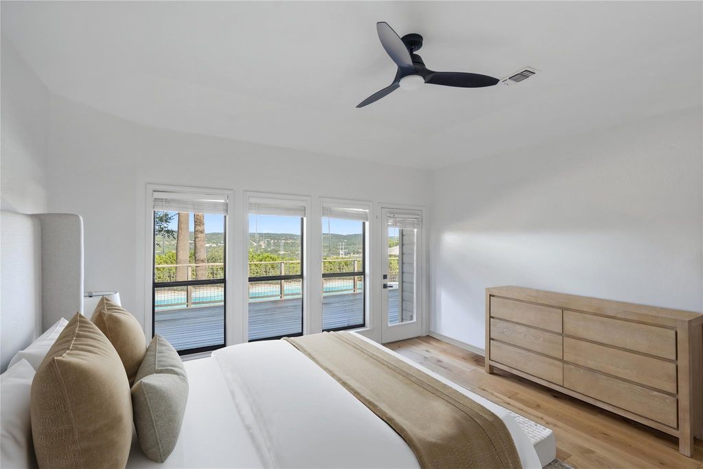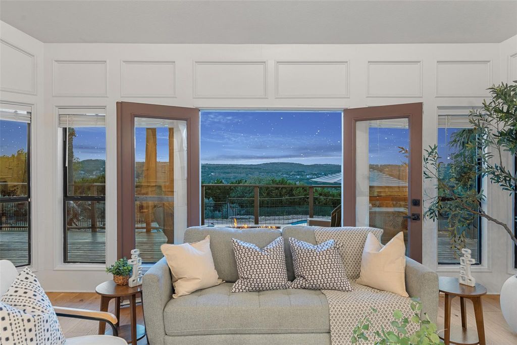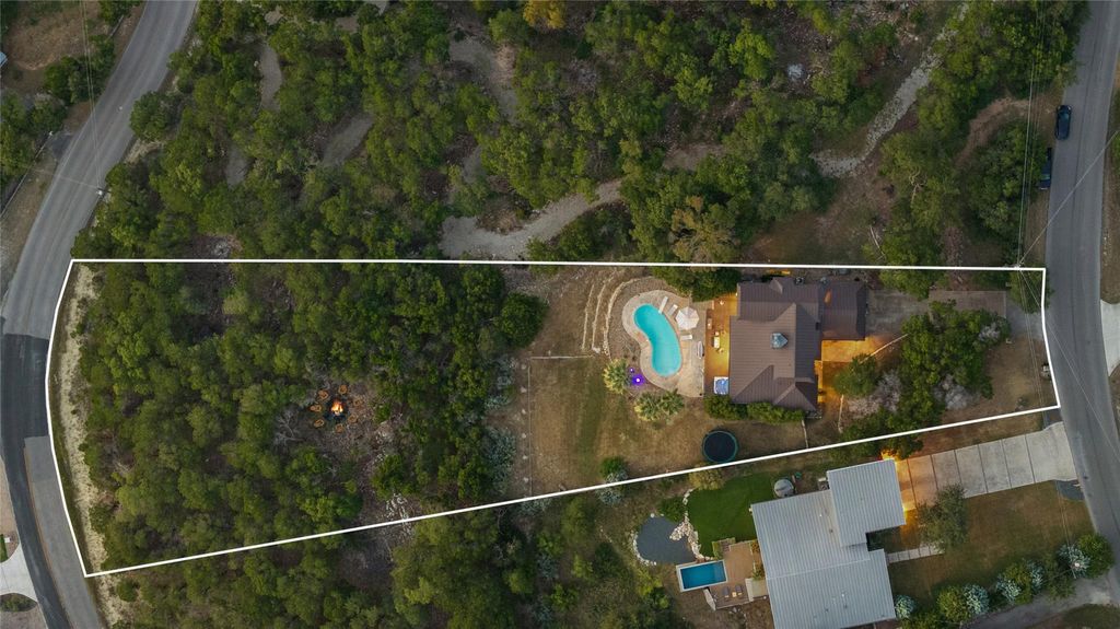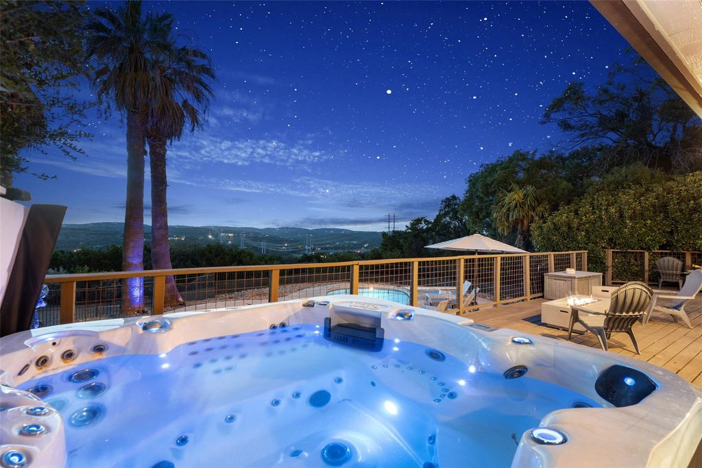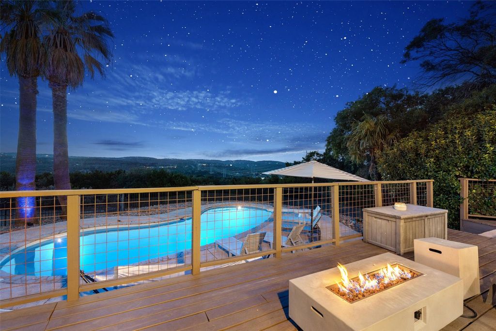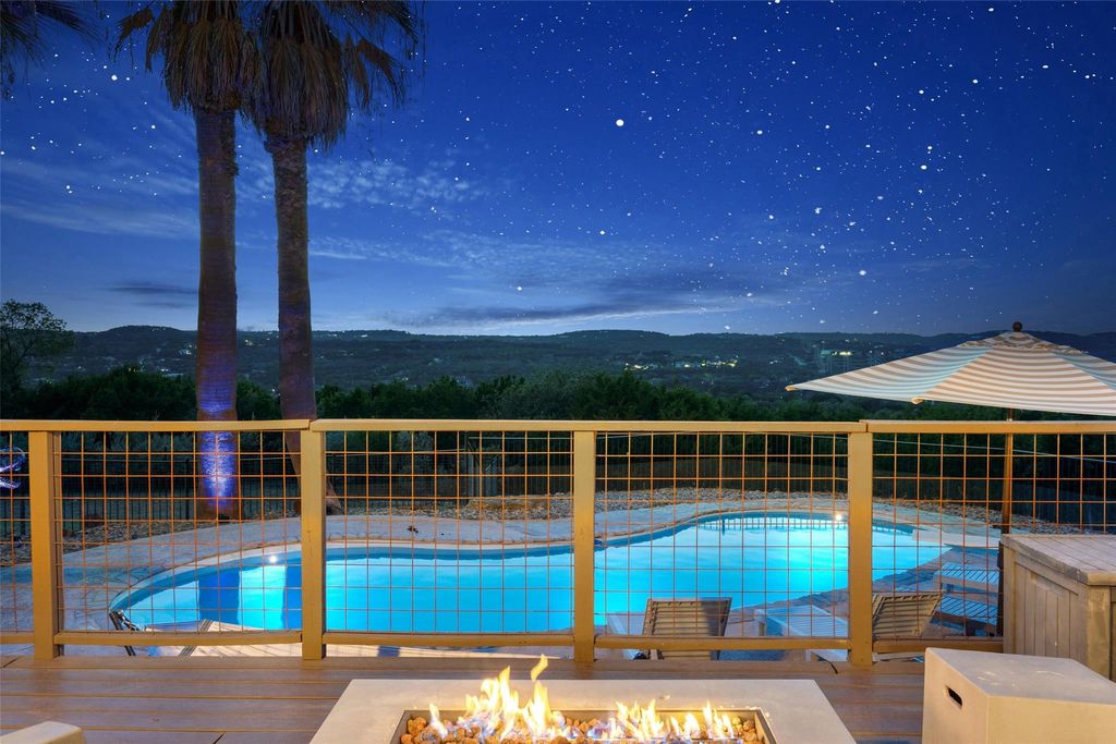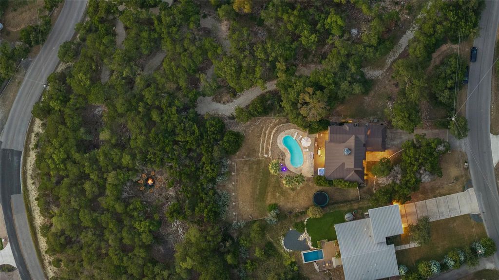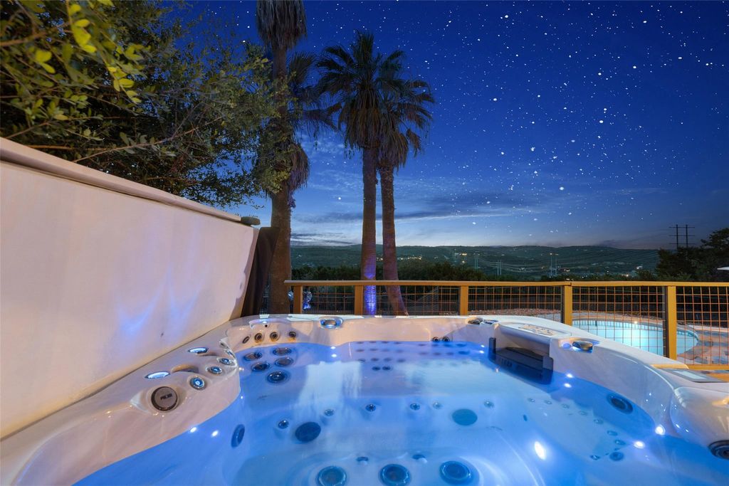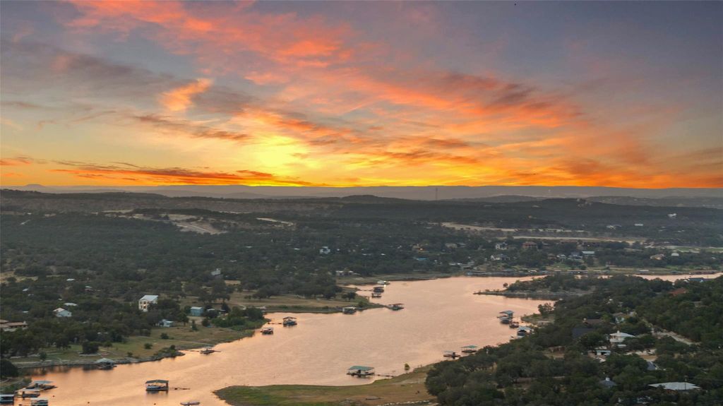 As twilight settles over the Hill Country, the stars emerge above your private hilltop retreat"”one acre of serene elevation in coveted Spicewood, Texas, just moments from Rough Hollow Lakeway, where resort-style living and lakeside luxury blend effortlessly. Here, stargazing by the firepit becomes a nightly ritual and sunrises paint the sky above sweeping treetop views. This 4-bedroom, 3-bath haven offers more than 2,300 square feet of soulful living, with a pool that glows under moonlight and a hot tub poised perfectly for evening soaks beneath the palms. Step inside to discover vaulted ceilings, natural wood beams, and rich European oak floors that carry warmth throughout the thoughtfully updated interior. French doors open to the breeze, blending indoor elegance with outdoor splendor. By day, the poolside terrace is your escape"”whether lounging under striped umbrellas, listening to cicadas from the hammock, or gathering around the fire table as the sun dips low. Indoors, two wood-burning fireplaces offer cozy bookends to your day, and a secondary upstairs lounge invites creativity, connection, or quiet retreat. The finished garage"”complete with heating and AC"”makes an ideal studio, gym, or workshop. The kitchen is outfitted with stainless appliances, granite counters, and crisp white cabinetry, while every space feels both current and character-rich. With a very low tax rate, minimal HOA restrictions, and zoning to highly acclaimed Lake Travis schools, this property balances freedom with investment value. You'll also enjoy private access to a neighborhood boat launch, swim dock, and scenic park"”your gateway to lake days and Hill Country adventure. Come home to something extraordinary"”where every view is a masterpiece, and every day feels like a getaway.