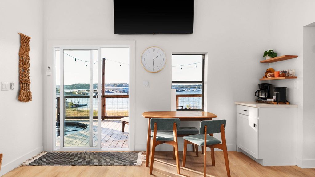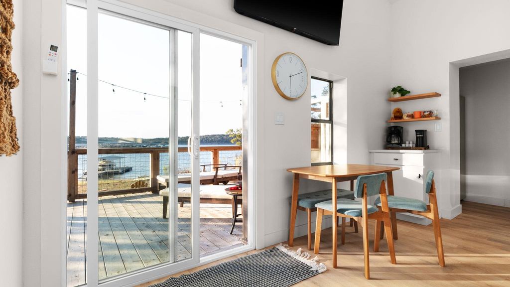 Welcome to your Hill Country escape on beautiful Lake Travis. This charming 1-bedroom, 1-bath home offers easy access to lake Travis, true lake views, and neighborhood wildlife. The open layout flows onto a spacious deck and large covered patio"”perfect for outdoor dining and entertaining. Located in a quiet lakeside neighborhood with private boat slip access, this home blends recreation and serenity in one package. Whether you're looking for a weekend getaway, a full-time retreat, or a proven short-term rental, this property delivers. With a conventional loan and 10% down, it can generate rental income exceeding the monthly PITI"”making it both a lifestyle and income opportunity.