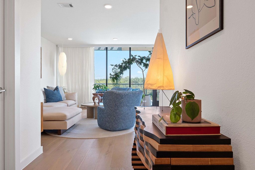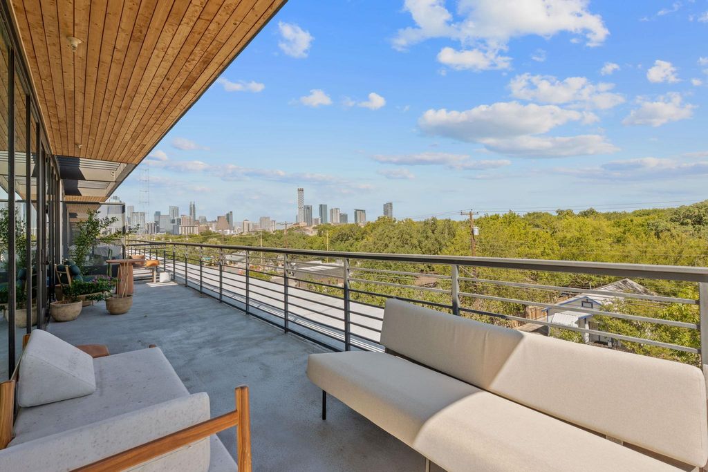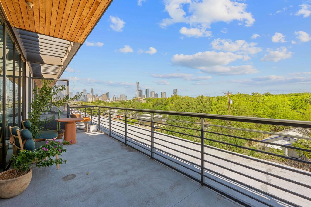 Welcome to a rare top floor, corner residence that lives like a luxury, single-family home in the heart of Austins most coveted zip codes, 78704. This spacious 3-bedroom, 2.5-bath floor plan spans has been thoughtfully remodeled with bespoke upgrades, including high end bathroom tile, chic light fixtures, a fresh backsplash, designer wallpaper, and new paint throughout. Floor-to-ceiling windows flood the home with natural light, framed by custom drapery that enhances both the city skyline and treetop views of Bouldin. The expansive, wraparound ~540 SF balcony invites you to enjoy morning coffee, sunsets, and effortless entertaining against a stunning backdrop of downtown Austin. Inside, the layout offers the comfort and convenience of a single-family home, featuring a welcoming entry, a powder bath for guests, a huge laundry room, and a walk-in pantry. The primary suite provides a serene retreat with a spa-like bath and a generous walk-in closet, while secondary bedrooms offer flexibility for family, guests, or a home office. Condo comes with two secure garage parking spaces. Perfectly positioned in one of the best locations in 78704, this residence offers a vibrant community just steps from South Congress, Downtown, and Austins most celebrated dining and entertainment.