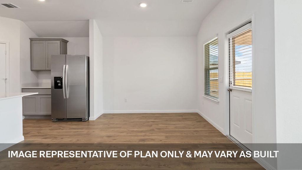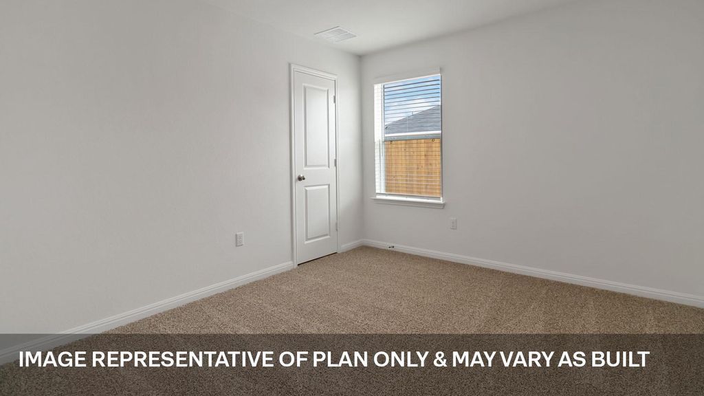 ESTIMATED COMPLETION LATE APRIL. Images representative of plan only and may vary when built. Step into the Irvine is a single-story home that offers 1,796 square feet of living space in our Monarch Ranch community in Manor, TX. The Irvine is the perfect place to call home with a two-car garage, four bedrooms and two bathrooms. When you enter the home, a long foyer will take you past the three spare bedrooms, the guest bathroom and utility room. As you enter into the heart of the home you are greeted with the open kitchen, breakfast nook and family room. The kitchen features a large kitchen island, perfect for entertaining, a walk-in pantry and stainless-steel appliances. The breakfast nook opens to the covered patio and backyard. The main bedroom, bedroom 1, is just off the family room at the back of the home offering privacy. Bedroom 1 features a large ensuite with a large walk in closet. This home comes included with a professionally designed landscape package and a full irrigation system as well as our America's Smart Home® package that offers devices such as the Qolsys IQ Panel, Video Doorbell, Alarm.com app, Honeywell Thermostat, Deako Smart Light Switch, Kwikset Smart lock, and more.