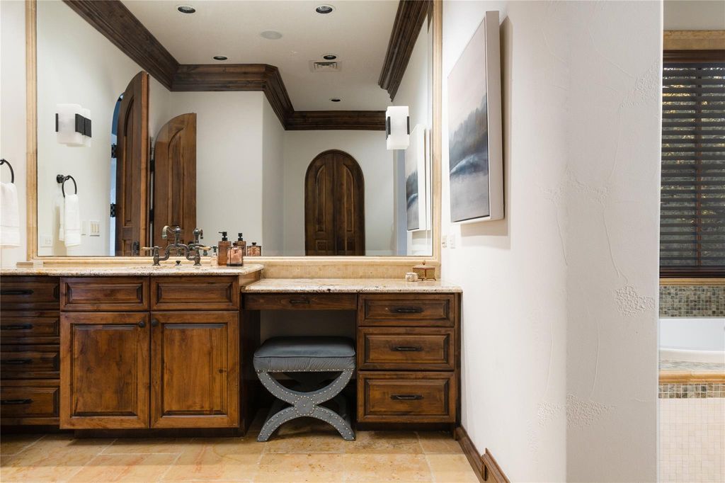Nestled on a prestigious corner lot in Westview, this breathtaking custom estate by Panache Builders blends old-world charm with modern luxury. The striking cantilevered brick entry sets the tone for the exquisite details that await inside"”stone and wood flooring, soaring wood-clad and beamed ceilings, and an awe-inspiring stone groin-vault foyer. The gourmet kitchen, featuring a barrel-vaulted ceiling, top-of-the-line appliances, and a personal pizza oven, is a chef's dream, while the temperature-controlled brick wine cellar with weeping mortar, seamlessly integrated into the formal dining room, transports you back in time. The home's design balances grandeur and comfort, boasting spacious family rooms, an elegant entertainment space with a full-size bar, and a stately office with floor-to-ceiling cabinetry overlooking the pool. Designed for effortless indoor-outdoor living, this estate is an entertainer's paradise. A massive 20'x40' swimming pool and hot tub create the perfect setting for relaxation, while the grillmaster's dream outdoor kitchen elevates al fresco dining. A separate guest casita with a full bath serves as both a luxurious retreat for visitors and a convenient pool bath. The second-floor primary suite, accessible via a private staircase, is a secluded haven offering breathtaking pool views, a steam shower, and a coffee bar. Additional features on the second floor include a spacious game room with a wet bar and kitchenette, ensuring endless entertainment, with each bedroom featuring its own ensuite bath. A fully equipped private gym is housed within the four-car garage, where one bay has been transformed into a high-performance fitness space. The circular front driveway offers ample parking. With its seamless blend of style, function, and opulence, this home is a true masterpiece"”an indoor-outdoor sanctuary built for entertainment, relaxation, and refined living.