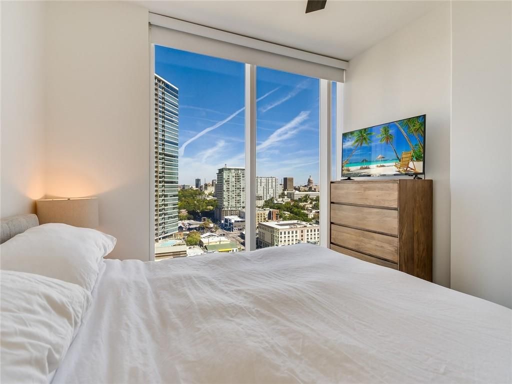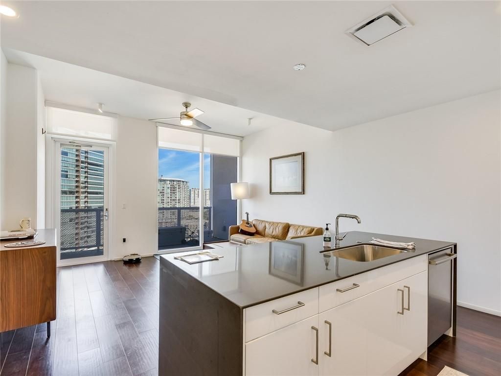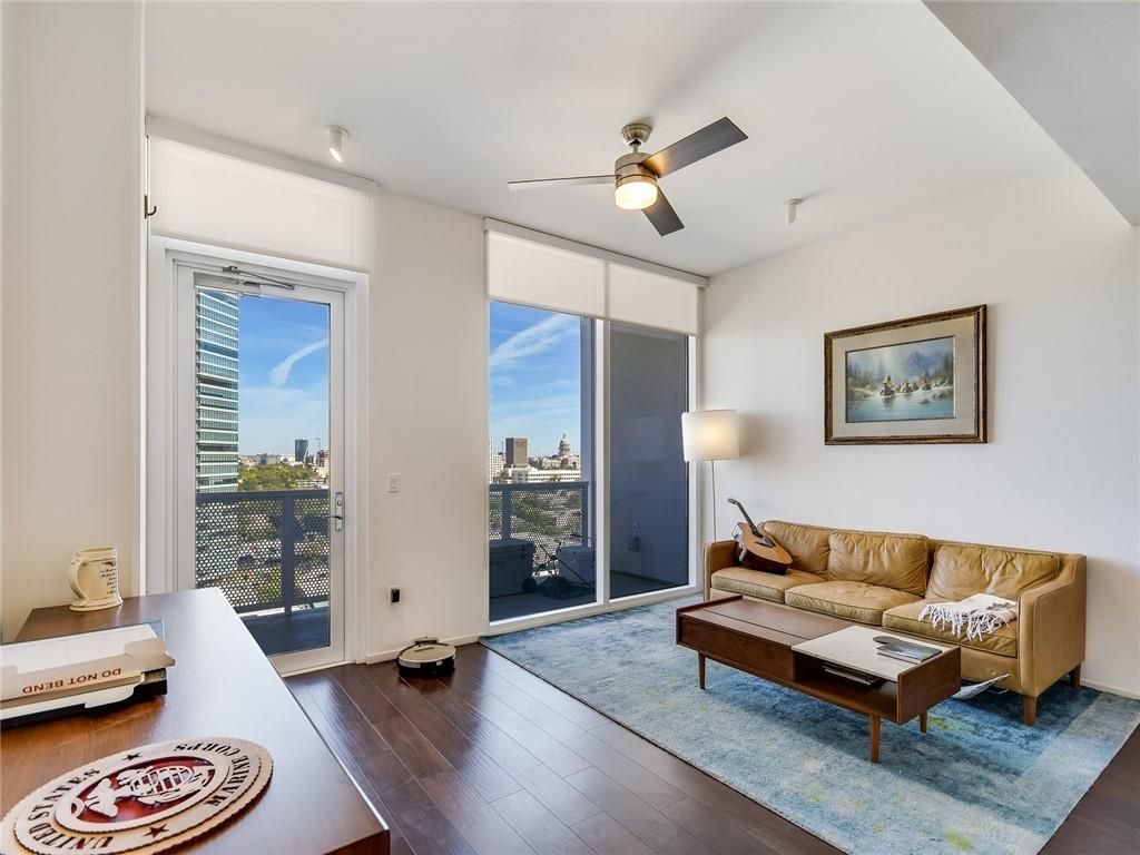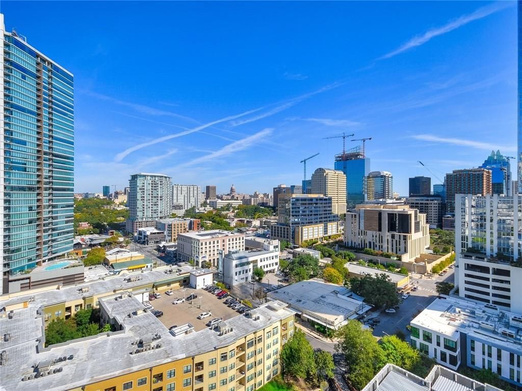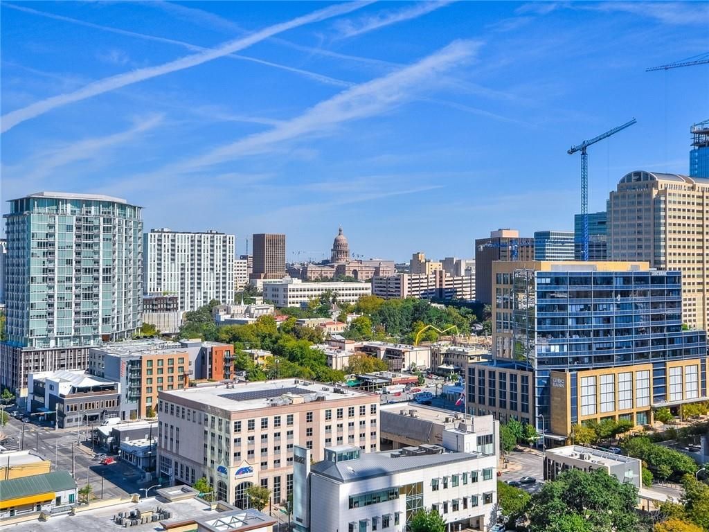 Experience city and Capitol views from this thoughtfully designed residence at the Independent. The open kitchen-living concept opens to the private covered north facing balcony. The kitchen features Bosch appliances, large center island, quartz countertops and hardwood floors. The primary bedroom with en-suite bath and walk-in closet also showcases beautiful city and Capitol views. This residence includes a reserved parking space conveniently located on garage level 3. The Independent boasts two full floors of amenity spaces spanning 20,000 sqft including heated infinity edge pool, expansive terrace with gas grills, owner's lounge with catering kitchen, club room, fitness center, yoga studio, conference rooms, movie theatre, dog park + wash station, three guest suites and 24/7 concierge service. Nestled along the bank of Shoal Creek, enjoy easy walkability to Lady Bird Lake hike & bike trail, Trader Joe's, Whole Foods, Austin Central Library and numerous shops, restaurants and nightlife experiences.