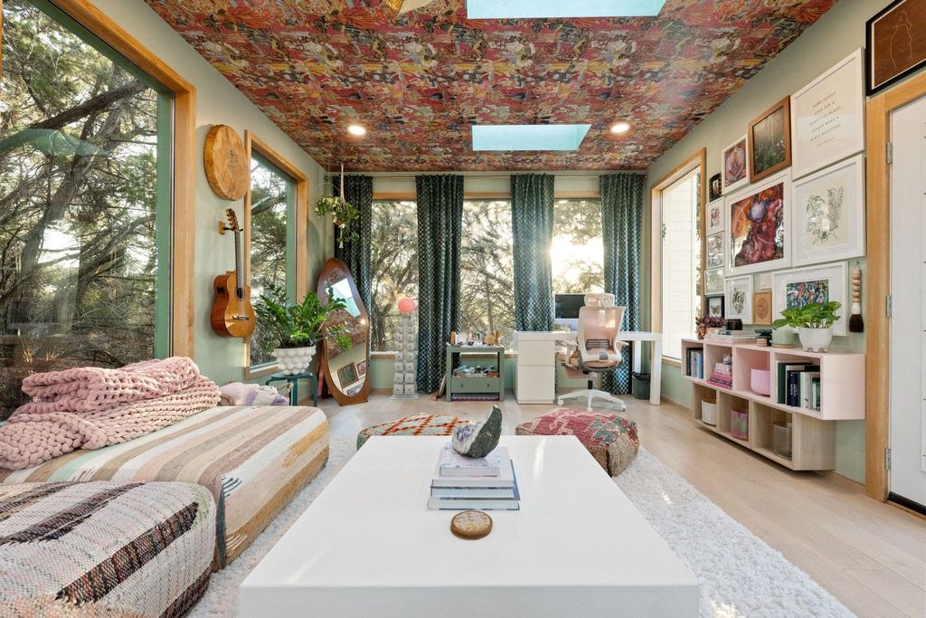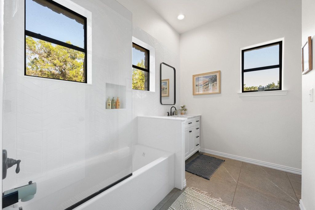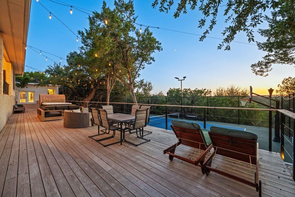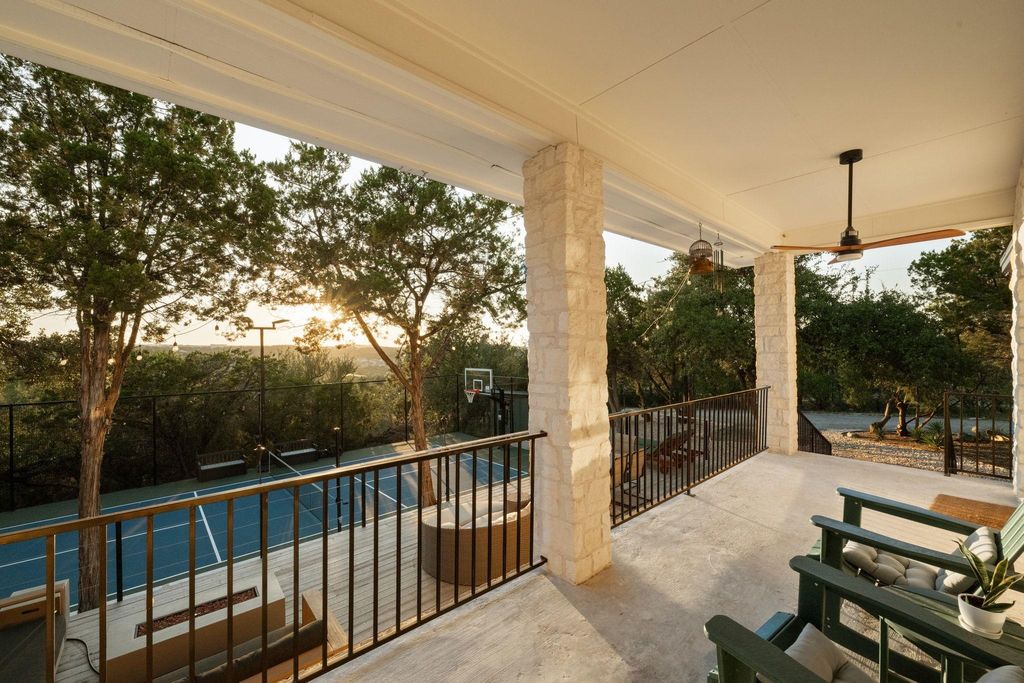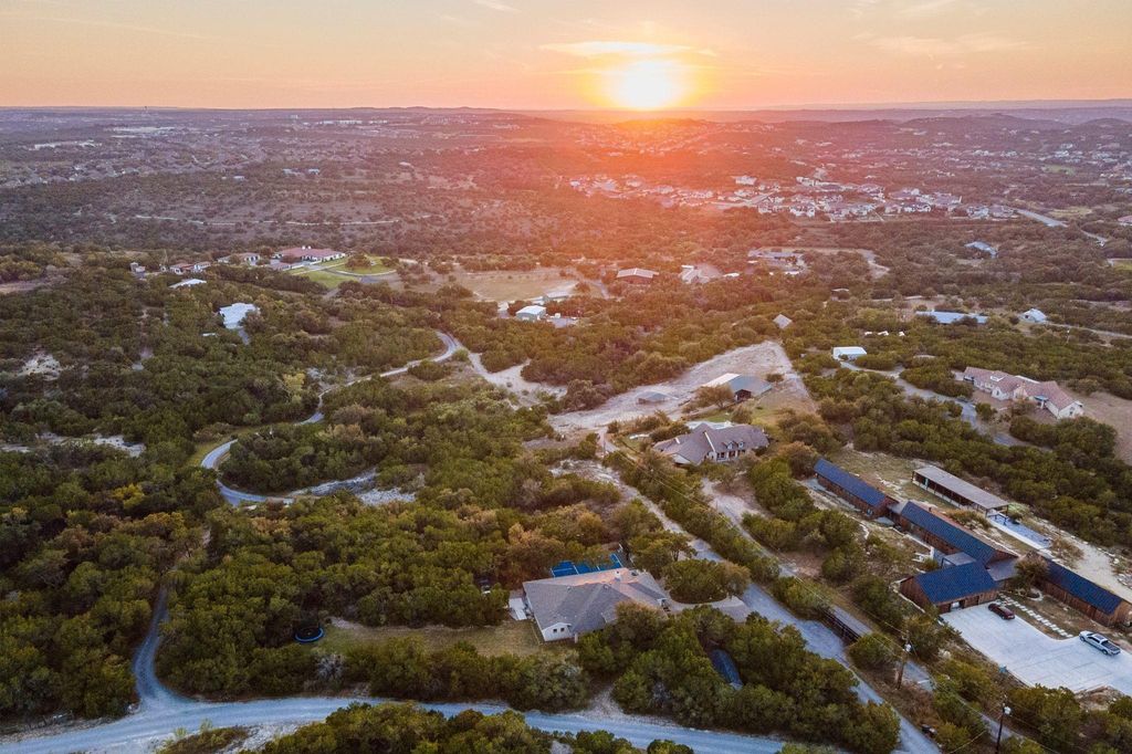 One-of-a-Kind Hill Country Retreat on 1.879 Private Acres with a private lit pickleball court & gorgeous sunset views! Tucked away from the main road & surrounded by lush landscaping & towering oak trees, this exceptional estate offers the perfect blend of privacy, luxury, & Hill Country views. Resting on 1.879 acres, the stone-clad residence spans 2,284 square feet with 3 bedrooms, 3 bathrooms, & a thoughtfully designed layout enhanced by open-concept living, hardwood flooring, custom details, & oversized black-frame windows that frame the serene scenery. A sophisticated formal dining or living space sets the tone with deep green walls, built-in bookcases, & a modern chandelier, while the central living room creates a warm gathering spot with its floor-to-ceiling stone fireplace. The stunning eat-in kitchen stands out with striking blue cabinetry, quartz countertops, a breakfast bar, abundant storage, & stainless-steel appliances. The private owner's suite feels like a true retreat with its custom mural, access to the rear deck, & a luxurious en-suite bath featuring separate quartz vanities, a freestanding soaking tub, a frameless walk-in shower, & a custom walk-in closet. Two generously sized guest bedrooms each have their own en suite bathrooms, while a cozy office/flex space & a large laundry room with built-in cabinetry & sink add everyday convenience. Unique to this home is the separate studio, a light-filled creative escape with two skylights, walls of windows capturing the natural beauty, & a whimsical wallpapered ceiling. Outdoors, multiple spaces invite relaxation & entertainment"”from the extended covered patio to the wood deck overlooking your own private pickleball & basketball court with sweeping Hill Country views. Opportunities are limitless with no HOA in this ETJ neighborhood, & you're approx. 10 minutes from Hill Country Galleria & Whole Foods for shopping, dining, & everyday conveniences. View our 3D Virtual Tour Link and Schedule a Showing today!