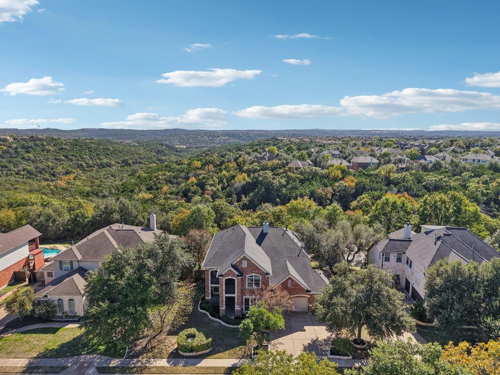 Secure your place in one of Steiner Ranch's most desirable enclaves. This property backs to greenbelt with wonderful views and is distinguished by its location in a section known for larger lots, offering a level of privacy and space that is hard to find. The home itself is a showcase of intelligent design, built around a bright and open floorplan that creates an immediate sense of volume. With 5 spacious bedrooms and 3.5 bathrooms, the layout provides exceptional flexibility. This is a home that can easily accommodate a growing family and dedicated spaces like a home office, game room, or private media room. The two-story living room features a wall of windows, filling the home with natural light and offering private views of the green landscape. The kitchen is an entertainer's hub, featuring a large central island with bar seating, granite countertops, and warm wood cabinetry. The home's true highlight is its connection to the outdoors. A stunning two-tier deck extends the living space dramatically, creating a perfect stage for hosting friends or enjoying quiet evenings. From here, you can take in the pretty hill country views that make this area so special. The generous backyard, a direct benefit of the larger lot, offers endless possibilities for recreation. This property is your key to the complete Steiner Ranch lifestyle. Enjoy access to three community centers with pools, playgrounds, and tennis courts. Explore over 20 miles of hiking and biking trails that wind through the picturesque landscape. Plus, gain exclusive entry to the private residents' Lake Club on Lake Austin for boating, swimming, and lakeside fun. This prime location is also a short walk to top-rated schools, and is zoned for the highly-acclaimed Vandegrift High School. This is a rare chance to own a substantial home where location, views, and an abundance of space come together perfectly. Recent roof, plumbed for water softener and lined for car charger.