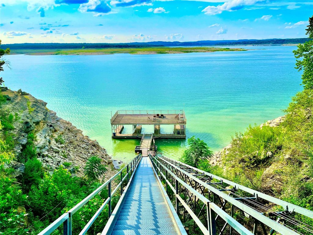 Luxury Lake Travis Resort Living. A gated residence with 180 degree lake views & breathtaking sunsets from your 5 balconies. This gorgeous tri-level townhouse has 4beds/4bath, a stunning kitchen with a custom marble fireplace, stainless steel appliances, exquisite backsplash and lighting fixtures. Furniture and decor negotiable with a full price offer. HOA FEE includes pools, gym, tennis and basketball court, marina dock, internet cable, water, insurance & grounds maintenance.