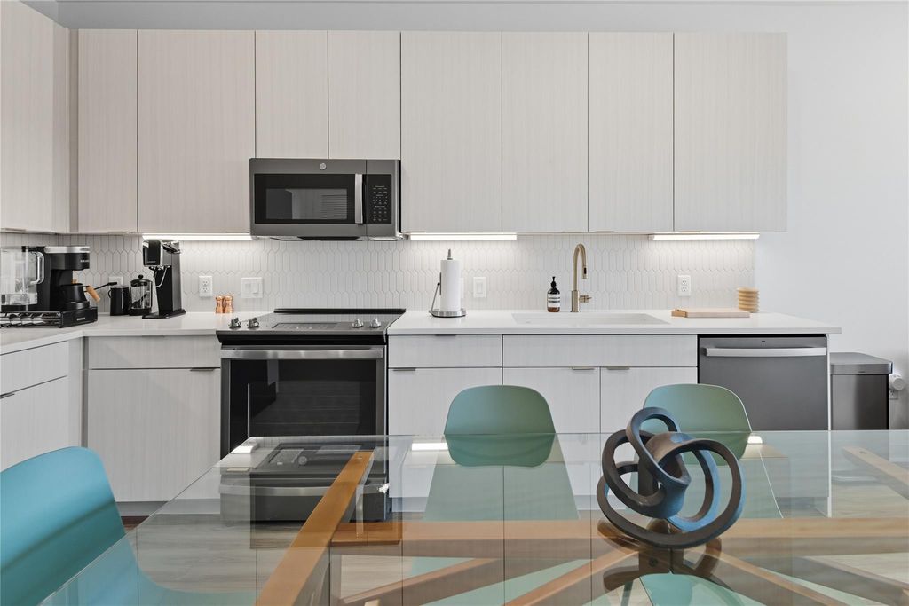 Welcome to your TOP FLOOR unit at The Bend Condominiums, where modern design meets effortless South Austin living! This beautifully designed 2-bedroom, 2-bath residence sits on the 5th floor and features a chic open-concept layout filled with natural light, high ceilings, and a spacious living and dining area that flows seamlessly to a private balcony"”perfect for relaxing or entertaining. The sleek kitchen is outfitted with quartz countertops, stainless steel appliances, and ample storage. The generously sized primary suite offers a large walk-in closet and a stylish en-suite bath with dual vanities and a glass-enclosed walk-in shower. The secondary bedroom is ideal for guests, a home office, or flex space, with ample room and comfort. Buyer will enjoy two reserved spaces in secure gated underground parking and access to resort-style amenities across five thoughtfully designed acres, including a state-of-the-art fitness center, pool, outdoor kitchen and grill, dog park, fire pit, community gardens, hiking trails, secure bike storage, lounges, and more. Located on the vibrant and iconic South Congress Avenue, less than four miles to Downtown Austin, this home offers the perfect blend of urban energy and serene retreat!