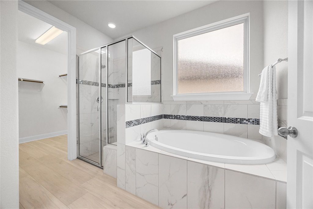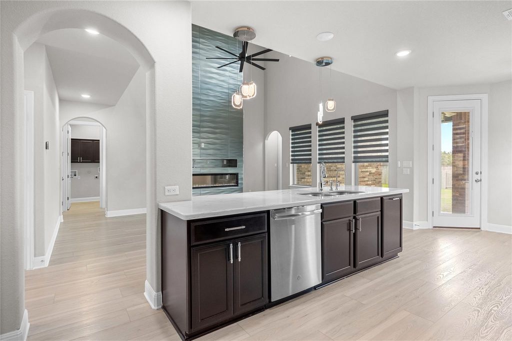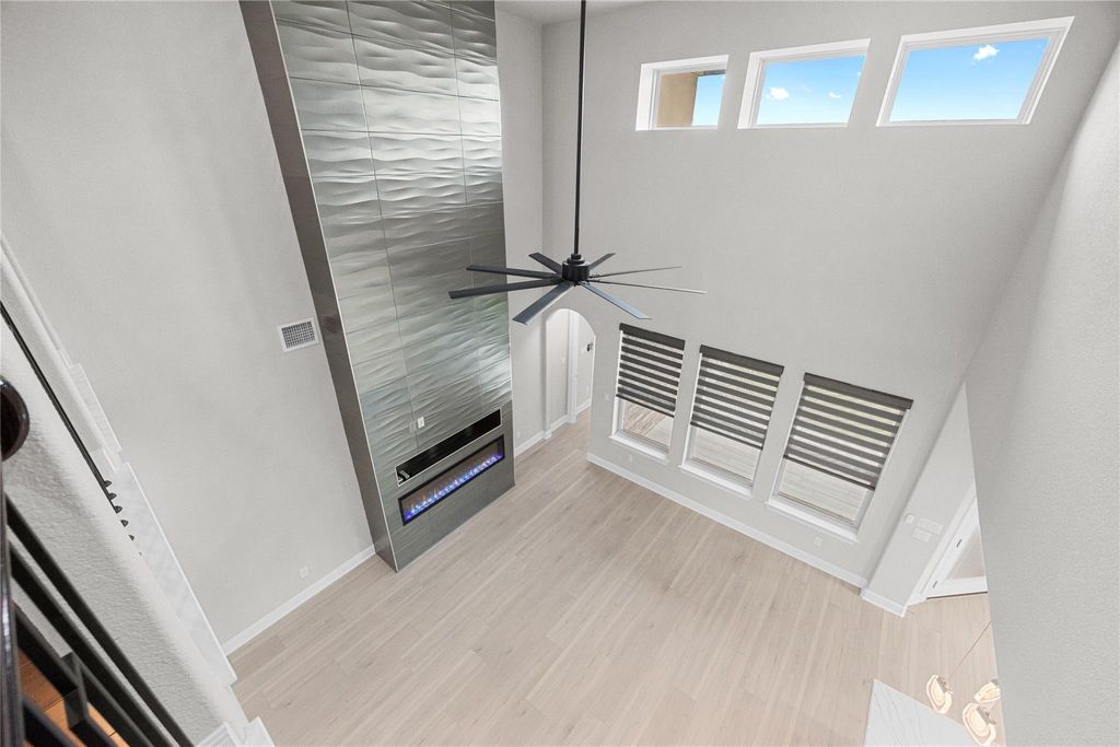 BRING ALL OFFERS! Seller is open to negotiate. Beautifully maintained two-story Taylor Morrison Benito floor plan in the sought after Crystal Falls neighborhood! Brand new roof just installed. The main level showcases luxury vinyl plank flooring, a contemporary fireplace with tile extending to the ceiling serves as a stunning focal point in the living area, adding both warmth and modern style. Primary bedroom is on the main level along with laundry room, and half bathroom for guests. The gourmet kitchen includes a new vent hood and is perfect for entertaining, while modern wrought iron railings and freshly painted interiors add to the home's stylish appeal. Upstairs, you'll find three additional bedrooms and two full bathrooms"”each upgraded with rain glass shower doors. All upstairs bedrooms and the staircase feature elegant wood flooring. A dedicated media room with built-in surround sound speakers provides the perfect space for movie nights. Additional upgrades include motorized and manual shades, a whole-house water softener system, custom garage shelving with epoxy-coated floors, and sleek, modern chandeliers throughout. Enjoy the outdoors with a fully equipped outdoor kitchen featuring a gas grill (never used), electric oven, and sink"”ideal for hosting gatherings. This move-in ready home combines comfort, style, and functionality"”ready for its next owner to enjoy.