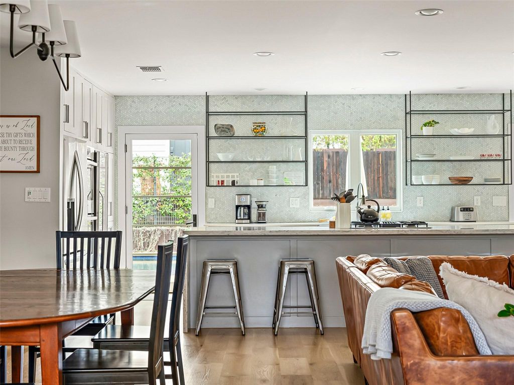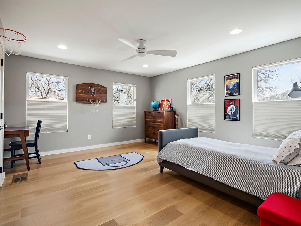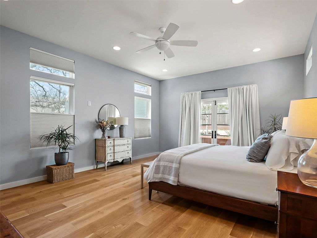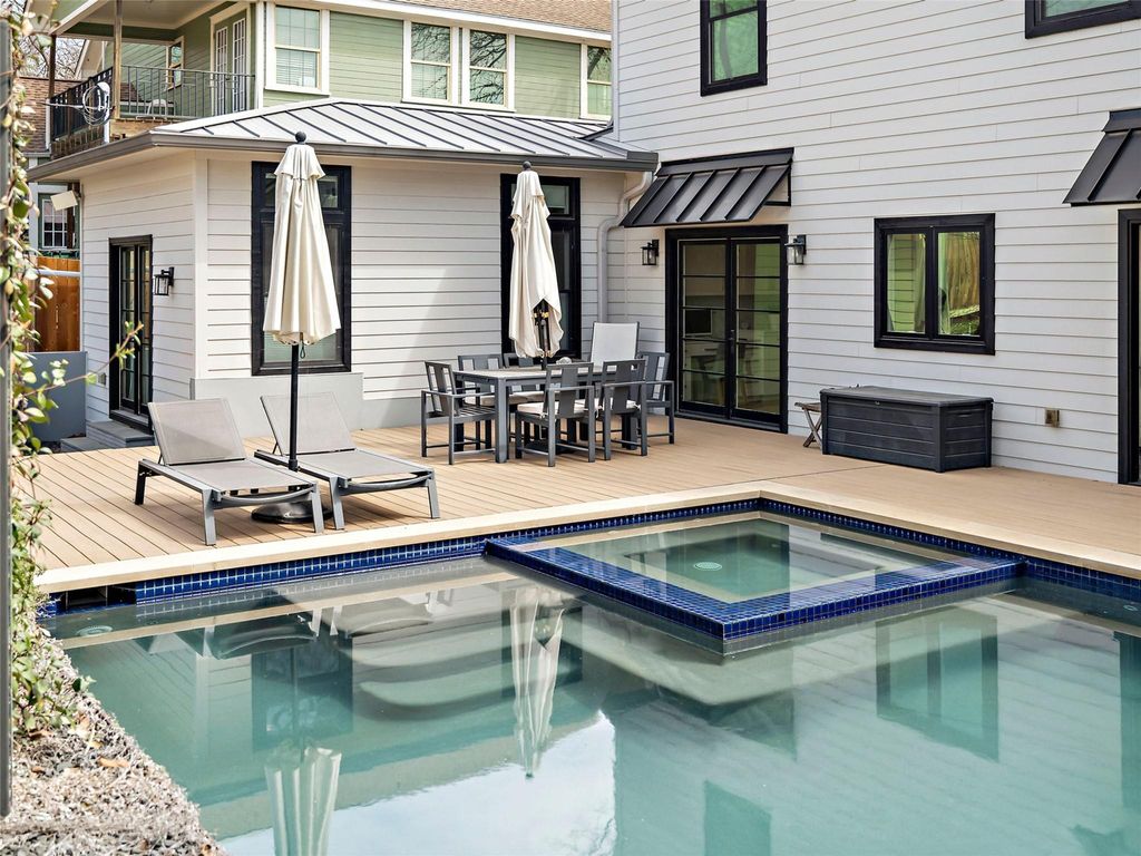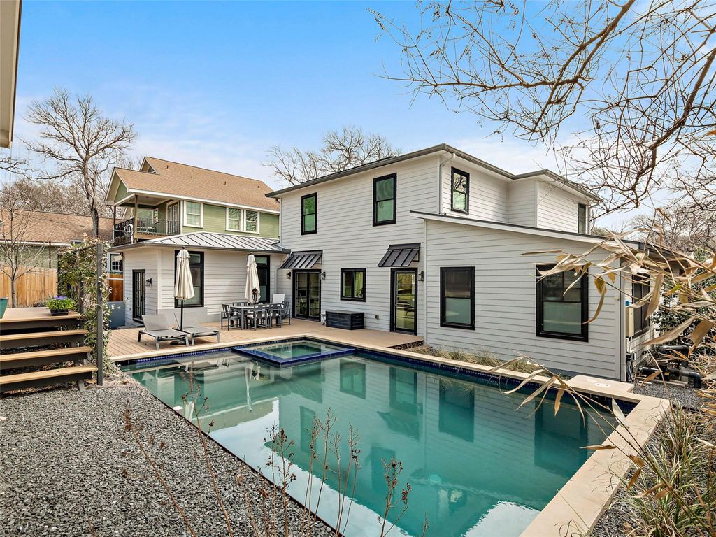 Discover the Clarksville lifestyle while living in this remodeled 4-bedroom plus office, 3.5-bathroom home, perfectly situated on a tranquil street near the beautiful parks and amenities surrounded by the historic charm and homes of the area. Upon entering, you'll be greeted by a seamless blend of modern design and timeless comfort. Completely renovated in 2018 down to the studs, the home boasts spray foam insulation, a standing seam metal roof, and solar panels, all contributing to reduced utility costs. Wide white oak floors guide you through an open-concept layout designed for both entertaining and everyday living. The chef-inspired kitchen features stainless appliances, a full-height wine cooler, an expansive island, and ample storage. The main level hosts an expansive primary suite with French doors that open to a backyard oasis. An additional primary bedroom suite on this level provides comfort and privacy for guests. Upstairs, two additional bedrooms share a well-appointed bathroom, while a versatile flex space. Descend to the lower level to discover an additional flex space. Outside, a resort-style pool with spa and Badu swim jets awaits in the professionally designed and landscaped backyard, offering a private retreat for sun-drenched afternoons. A low-maintenance engineered deck provides the ideal setting for alfresco gatherings. A detached two-car garage with alley access adds convenience and security. This .229-acre lot benefits from recent City of Austin land development code changes, allowing for the addition of two additional residences, increased square footage, and significant investment potential. This home epitomizes the allure of the Clarksville neighborhood, boasting a rare combination of a pristine modern update, a private pool, and a spacious two-car garage. Opportunities like this are seldom available in this coveted area.