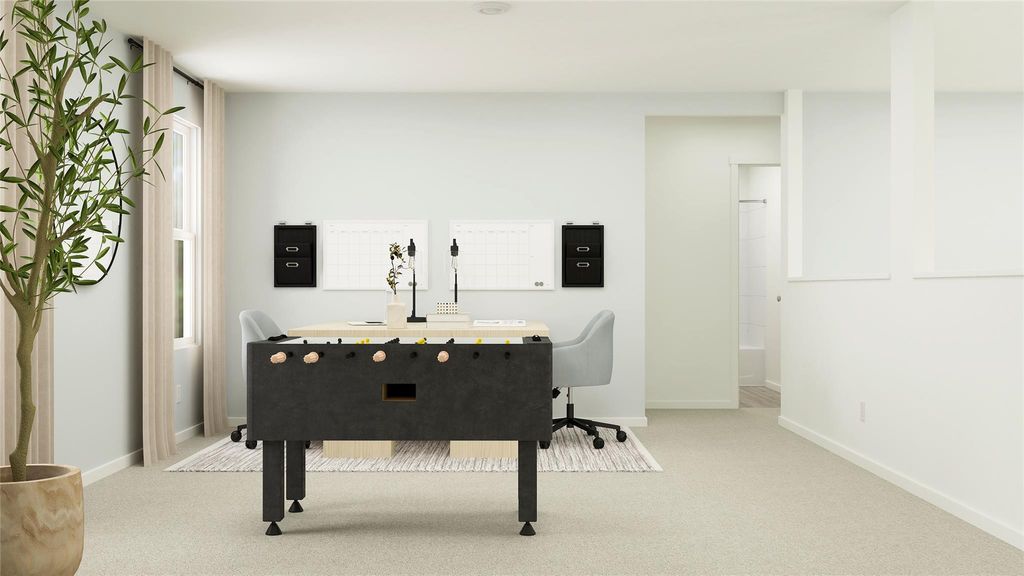 The Sabas - This new two-story home features a luxurious owner's suite on the first floor, complete with a spa-inspired bathroom and walk-in closet. An open-concept floorplan offers simple multitasking and transitions with convenient access to a covered porch. Three additional bedrooms are located on the second floor surrounding a versatile game room. A two-car garage at the back of the home is ready for any storage or parking needs. Photos are for illustrative purposes only. Estimated Completion January 2026.