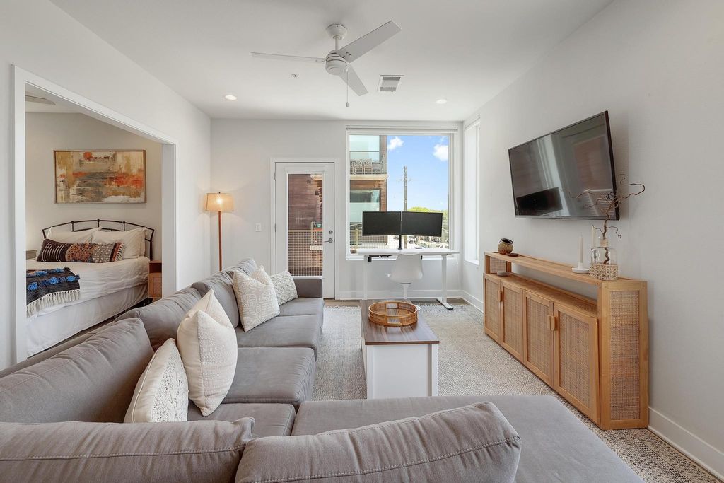 Located at 1800 E 4th ST #207, this condominium presents an an attractive deal in a great location, offering an exceptional opportunity to experience urban living at its finest. The kitchen features a beautiful backsplash, creating a focal point with an open floor plan; it is an inviting space to prepare your favorite meals. In the bathroom, you will discover a tiled walk-in shower, providing a spa-like experience that enhances your daily routine. The outdoor living space and balcony offer a private retreat to enjoy the vibrant energy of Austin. Just steps from Whole Foods, Target, Whisler's, Lazarus Brewing, and a host of local favorites, this condo puts you right in the middle of everything. Inside, high ceilings and expansive windows amplify the natural light, while warm wood floors and custom closets make the most of the smart layout. The kitchen pops with stainless appliances, quartz counters, and a modern tile backsplash. Residents enjoy top-notch amenities including a pool, gym, EV chargers, guest suites, conference room, dog wash station, and more. Fridge, washer, and dryer convey.