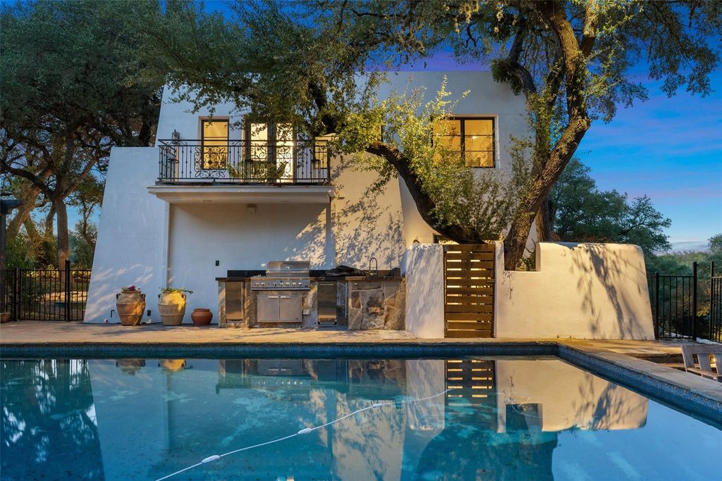 If Ralph Lauren designed a home for the Mexican Cartel in Bel Air, picked it up and set it down in Lakeway.....this is what you'd have. Spectacular, rare estate-type property in Lakeway. Set behind a gated entrance and set on the acclaimed "Jaws" hole on Lakeway's Live Oak golf course. Timeless sautillo tile floors, grand hallway/gallery entry, chef's kitchen, seculded pool and hot tub. 2 car over-sized garage. Primary suite and 2 additional bedrooms are on the main level with 2 additional bedrooms and baths upstairs. This is a very special opportunity to own something that's truly one-of-a-kind in Lakeway. Enoy living in of the highest ranked public school disctricts in the State of Texas. Enjoy quick access to golf and Lake Travis with grocery stores and shopping just minutes away. Call today to schedule an easy showing appointment.