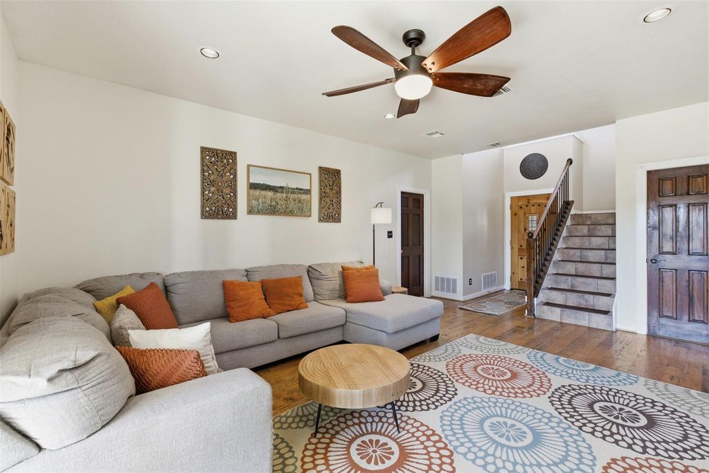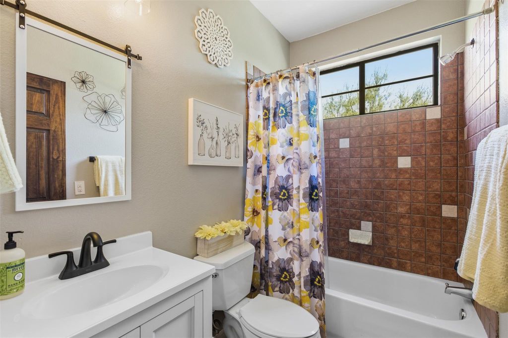 Hill Country Micro-Farm Retreat with Canyon Views | No Restrictions | Special Financing Available Welcome to 4110 Tyx, a rare Texas Hill Country retreat offering breathtaking canyon views, modern updates, and unrestricted land"”perfect for a private residence, short-term rental, or sustainable micro-farm lifestyle. Surrounded by Hill Country beauty and celebrity neighbors, this 4-bedroom, 3-bath cottage-style home features a smart reverse floor plan designed to maximize views and privacy. The upper level includes the main living, dining, and kitchen areas along with three bedrooms. The primary suite, kitchen, and living room all capture panoramic canyon views. Step out onto the expansive deck to enjoy morning coffee, sunset views, or entertaining guests. Downstairs offers an additional bedroom, full bath, and secondary living space"”ideal for guests, multigenerational living, or rental flexibility. This property is a true Hill Country micro-farm. The partially fenced backyard supports free-range chickens, raised garden areas, fruit trees, and pollinator-friendly native plants. Over 125 yards of enriched soil have been added, creating a productive landscape for vegetables, fruits, and potential beehives for honey production. Perched above Lick Creek, which flows into the Pedernales River, the property offers direct access for kayaking, fishing, and wildlife viewing. Dramatic cliffs and natural cave formations add to the one-of-a-kind Hill Country setting. Recent improvements include a water filtration system (2025), septic updates (2021-2025), exterior paint and balcony upgrades (2024), AC improvements (2018-2025), hot water heater (2023), and well head (2017). Blending modern comfort, scenic views, and sustainable living, 4110 Tyx offers privacy, freedom, and versatility"”just minutes from local dining, shopping, and city conveniences. A truly unique Hill Country property.