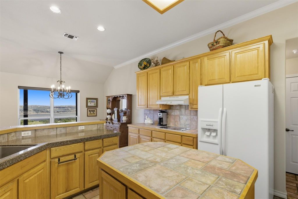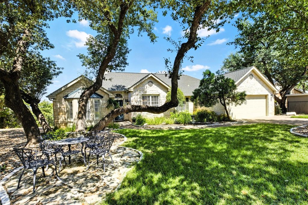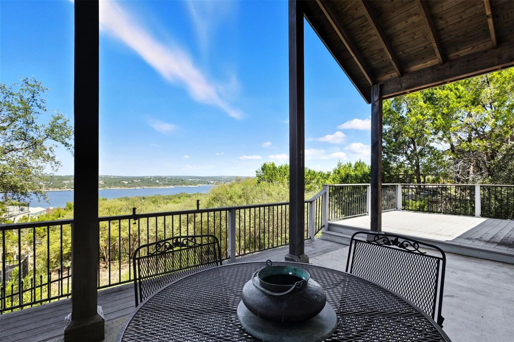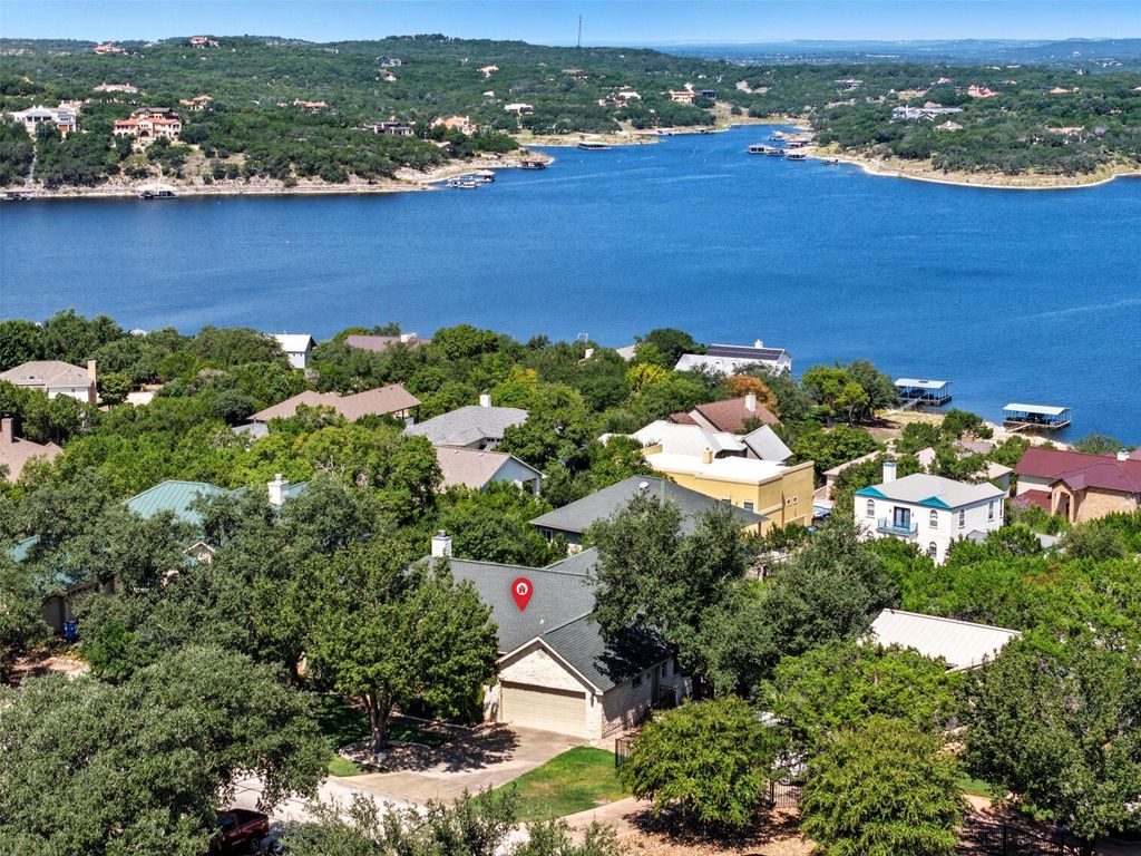 Lake Travis views from this property. The property is currently protected with an additional lot for constant views. Lot may be separated and sold. There would still be a lake view but not as unobstructed as current view. The custom built 3 bedroom 2 bath home features light wood flooring throughout. The primary bedroom is on one side of the property and two guest bedrooms are on the other side. The living area features a fireplace with electric insert but can be a wood burning fireplace without the insert. There is a formal dining room, a breakfast area, a breakfast bar, and large laundry room with abundant storage. Kitchen has white appliances and tile countertops. This property is in an area of Point Venture where STR's are not allowed. So enjoy the peace and quiet of the neighborhood. Sit on the large back porch to watch boat traffic on the Lake. Point Venture has a huge park with a boat ramp, beach area, playground, library, clubhouse, and a large public pool. A nine hole golf course, with fun activities complete the neighborhood. Tucked at the end of Lohman Ford road, this subdivision has been sought after for many years. Captain Pete's floating restaurant is available for meeting with friends and listening to live music. Call for your appointment to view this lovely property.